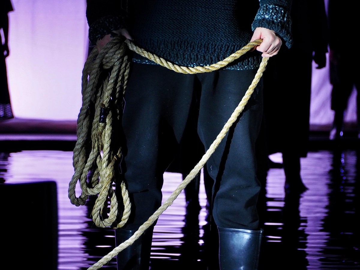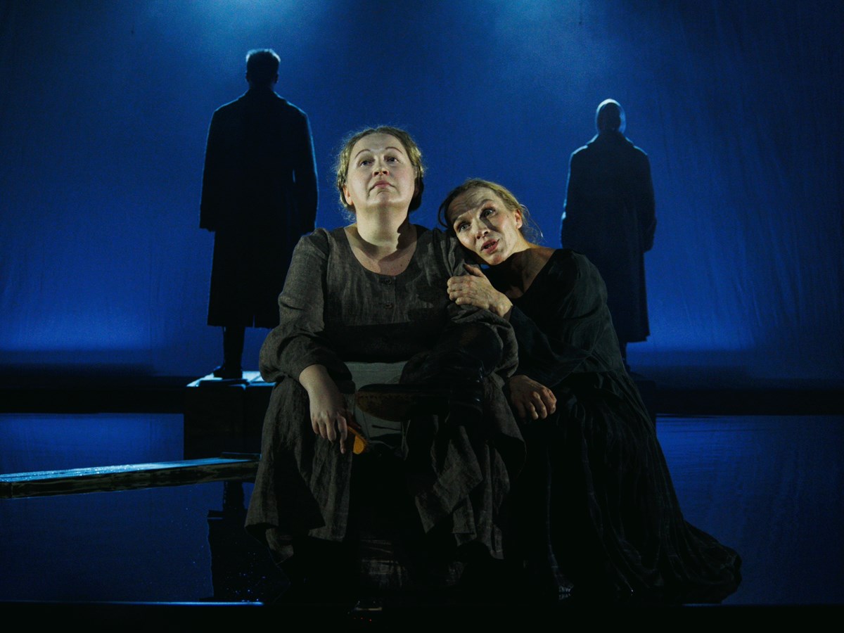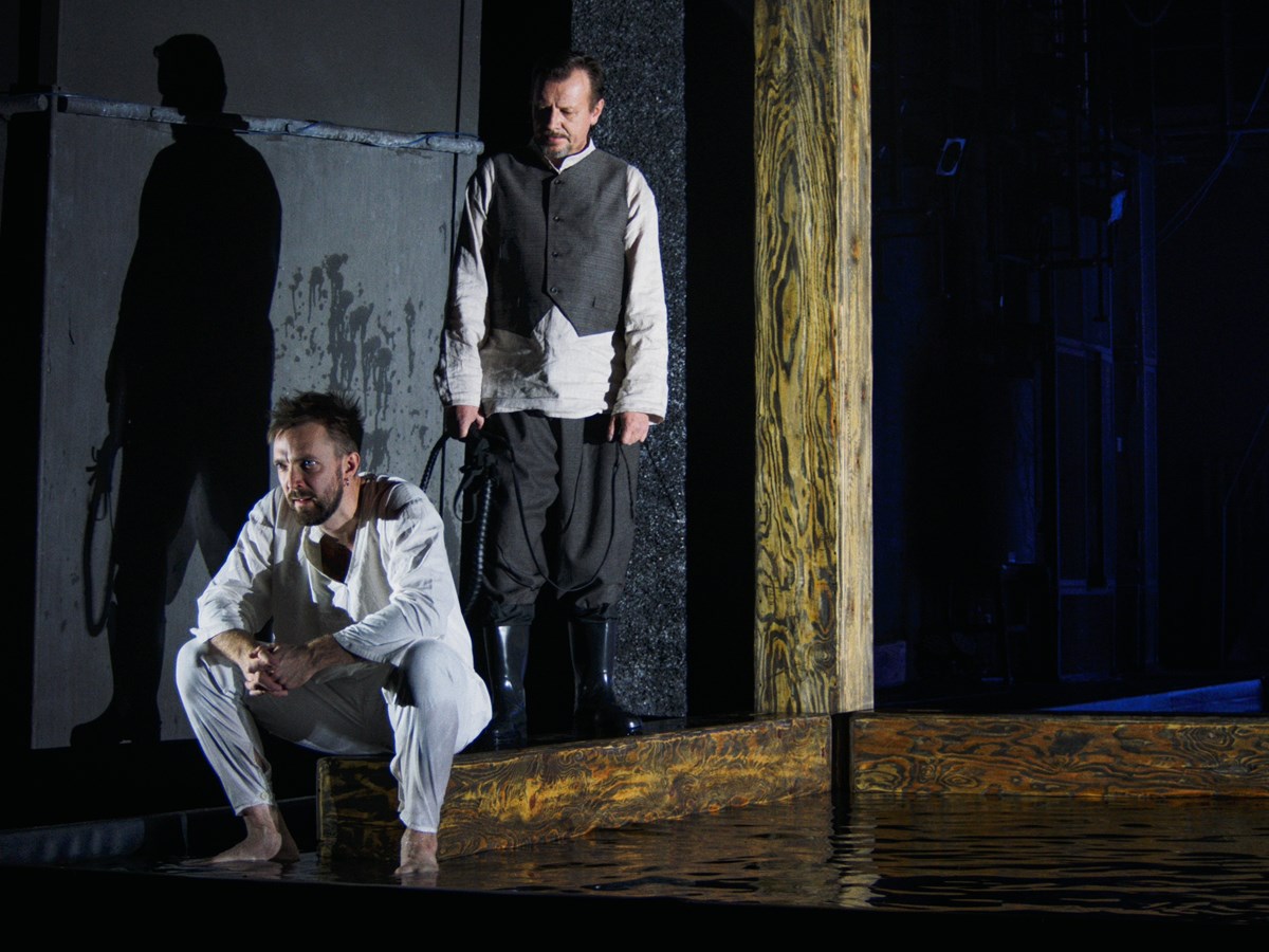 По тому же пути познания пошли и авторы спектакля – драматург Ярослава Пулинович, режиссёр Егор Чернышов, художник Мария Лукка и композитор Сергей Ушаков. Они создали одновременно мир тьмы и надежды. С самого начала перед зрителями встаёт безжалостное тёмное царство – дом купцов Измайловых, этап каторжников, настоящая Волга. Главный образ сценографии – безнадёжные сумерки, в которых не бывает рассвета.