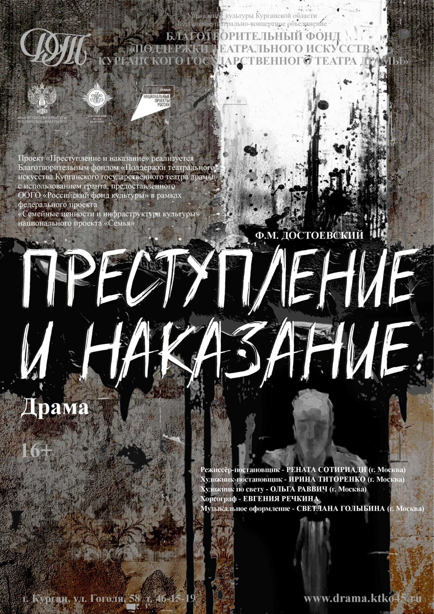 Свой 83-й театральный сезон Курганский театр драмы начал с премьеры спектакля «Преступление и наказание» по одноимённому роману Фёдора Михайловича Достоевского.
