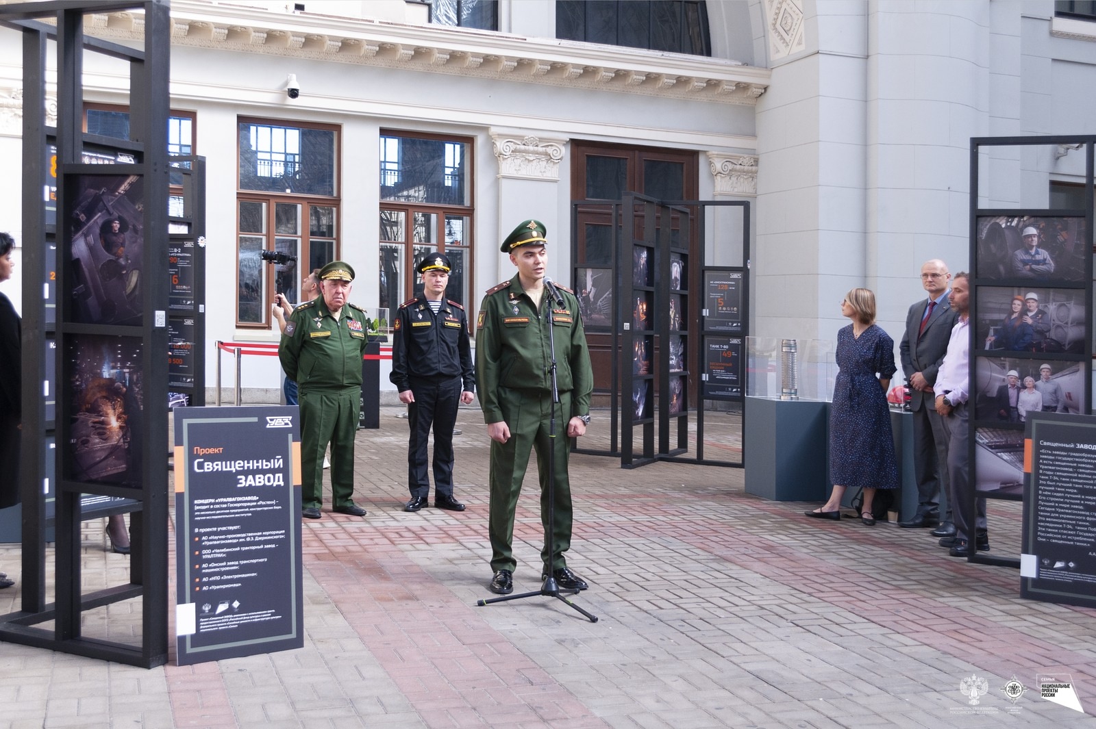 На Киевском вокзале в Москве открылась выставка «Священный завод», посвящённая подвигу тружеников тыла в современных реалиях. Экспозиция содержит кадры челябинских заводов НПО «Электромашина» и «ЧТЗ-Уралтрак».